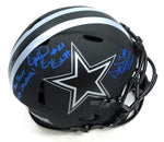This Riddell Authentic Helmet was personally hand signed by Dak Prescott with America's Team and Ezekiel Elliott with How Bout Them Cowboys in blue paint marker. The Helmet was signed in the presence of a Beckett Authentication Services Representative and comes affixed with a individual numbered hologram. The Helmet also comes with a Famous ink hologram guaranteeing authenticity for life. Domestic ground shipping for this item is FREE to the contiguous 48 states. Please contact us for International and other shipping options.