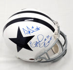 This Riddell White Throwback Authentic Helmet was personally hand signed by Dak Prescott & Ezekiel Elliott in blue marker. The Helmet was signed in the presence of a Beckett Authentication Services Representative and comes affixed with a witnessed individual numbered tamper-evident sticker and matching Certificate of Authenticity card. The Helmet also comes with a Famousink hologram guaranteeing authenticity for life. Domestic ground shipping for this item is FREE to the contiguous 48 states. Please contact us for International and other shipping options.