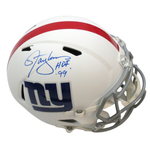 This Riddell Matte White Speed Replica Helmet was personally hand signed by Lawrence Taylor in blue paint marker with the inscription "HOF 99". The Helmet was signed in the presence of a Beckett Authentication Services Representative and comes affixed with a witnessed individual numbered tamper-evident sticker and matching Certificate of Authenticity card. The Helmet also comes with a Famousink hologram guaranteeing authenticity for life. Domestic ground shipping for this item is FREE to the contiguous 48 states. Please contact us for International and other shipping options.