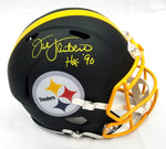 This Riddell Replica Helmet was personally hand signed Jack Lambert in yellow paint marker. The Helmet is Authenticated by Beckett Authentication Services and comes affixed with a individual numbered tamper-evident sticker and matching Certificate of Authenticity card. The Helmet also comes with a Famousink hologram guaranteeing authenticity for life. Domestic ground shipping for this item is FREE to the contiguous 48 states. Please contact us for International and other shipping options.