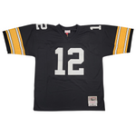 This Mitchell & Ness Jersey was personally hand signed by Terry Bradshaw in black marker. The Jersey was signed in the presence of a Beckett Authentication Services Representative and comes affixed with a witnessed individual numbered tamper-evident hologram. The Jersey also comes with a Famous Ink hologram guaranteeing authenticity for life. Domestic ground shipping for this item is FREE to the contiguous 48 states. Please contact us for International and other shipping options.