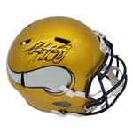 This Flash Replica Helmet was personally hand signed by Adrian Peterson in black marker. The Helmet was signed in the presence of a Beckett Authentication Services Representative and comes affixed with a witnessed individual numbered tamper-evident hologram. The Helmet also comes with a Famous Ink hologram guaranteeing authenticity for life. Domestic ground shipping for this item is FREE to the contiguous 48 states. Please contact us for International and other shipping options.