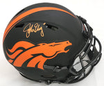 This Eclipse Authentic Helmet was personally hand signed by John Elway in orange paint marker. The Helmet was signed in the presence of a Beckett Authentication Services Representative and comes affixed with a witnessed individual numbered hologram. The Helmet also comes with a Famous ink hologram guaranteeing authenticity for life. Domestic ground shipping for this item is FREE to the contiguous 48 states. Please contact us for International and other shipping options.