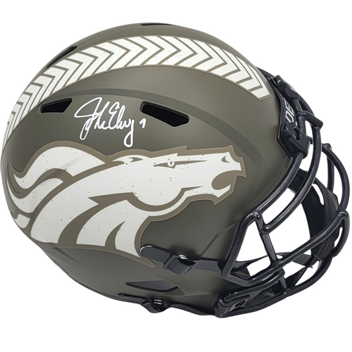 This Replica Helmet was personally hand signed by John Elway in white paint marker. The Helmet was signed in the presence of a Beckett Authentication Services Representative and comes affixed with a witnessed individual numbered hologram. The Helmet also comes with a Famous ink hologram guaranteeing authenticity for life. Domestic ground shipping for this item is FREE to the contiguous 48 states. Please contact us for International and other shipping options.