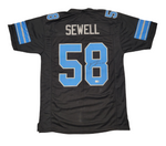This Pro Style Jersey was personally hand signed by Penei Sewell in black marker. The Jersey was signed in the presence of a Beckett Authentication Services Representative and comes affixed with a witnessed individual numbered tamper-evident hologram. The Jersey also comes with a Famous Ink hologram guaranteeing authenticity for life. Domestic ground shipping for this item is FREE to the contiguous 48 states. Please contact us for International and other shipping options.