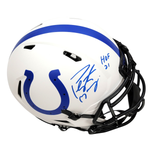 This Lunar Eclipse Authentic Helmet was personally hand signed by Peyton Manning in blue paint marker with "HOF 21". The Helmet was signed in the presence of a Fanatics Representative and comes affixed with a witnessed individual numbered hologram. The Helmet also comes with a Famous ink hologram guaranteeing authenticity for life. Domestic ground shipping for this item is FREE to the contiguous 48 states. Please contact us for International and other shipping options.