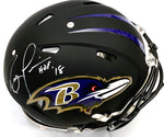This Riddell Matte Black Speed Replica Helmet was personally hand signed by Ray Lewis in white paint marker with the inscription "HOF 18". The Helmet was signed in the presence of a Beckett Authentication Services Representative and comes affixed with a witnessed individual numbered tamper-evident sticker and matching Certificate of Authenticity card. The Helmet also comes with a Famousink hologram guaranteeing authenticity for life. Domestic ground shipping for this item is FREE to the contiguous 48 states. Please contact us for International and other shipping options.