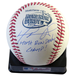 This 2010 Home Run Derby Official Major League Baseball was personally hand signed by David Ortiz in blue ball point pen with the inscription "Home Run Derby Champ". The Baseball was signed in the presence of a Beckett Authentication Services Representative and comes affixed with a individual numbered tamper-evident hologram. The Baseball also comes with a David Ortiz hologram guaranteeing authenticity for life. Domestic ground shipping for this item is FREE to the contiguous 48 states. Please contact us for International and other shipping options.