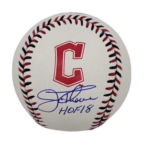 This Official Major League Baseball with the Cleveland logo and team color stitching was personally hand signed by Jim Thome in blue ball point pen with the inscription "HOF 18."...