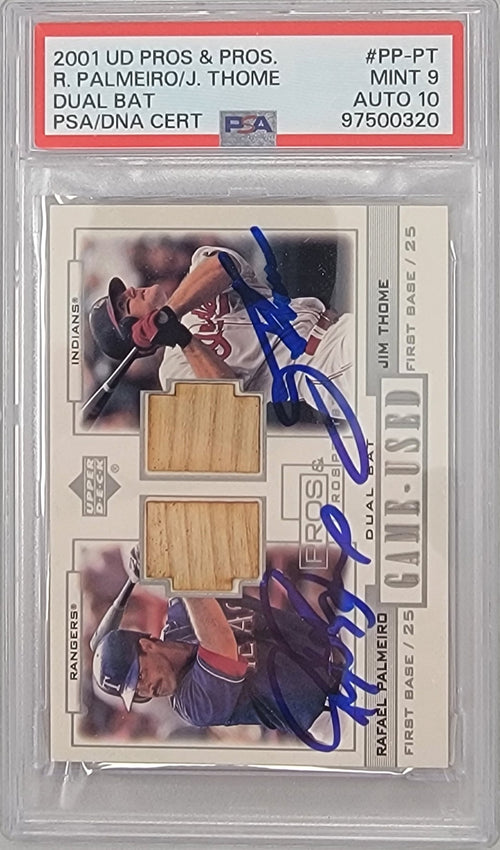 Jim Thome Rafael Palmeiro Autographed Indians Rangers 2001 Upper Deck Game Used Bat Trading Card PSA 97500320